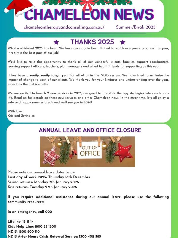 Kristyn (Speech Pathology): kristyn@chameleontherapyandconsulting.com.au